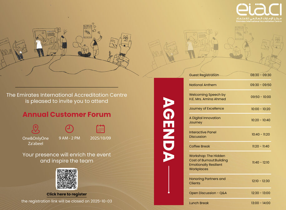 We are pleased to invite you to participate in the EIAC Annual Customers Forum on 9 October 2025. The forum aims to enhance communication channels with customers and partners, discuss key updates, challenges, and highlight best practices that contribute to the development of the accreditation system in line with the highest international standards. Register here